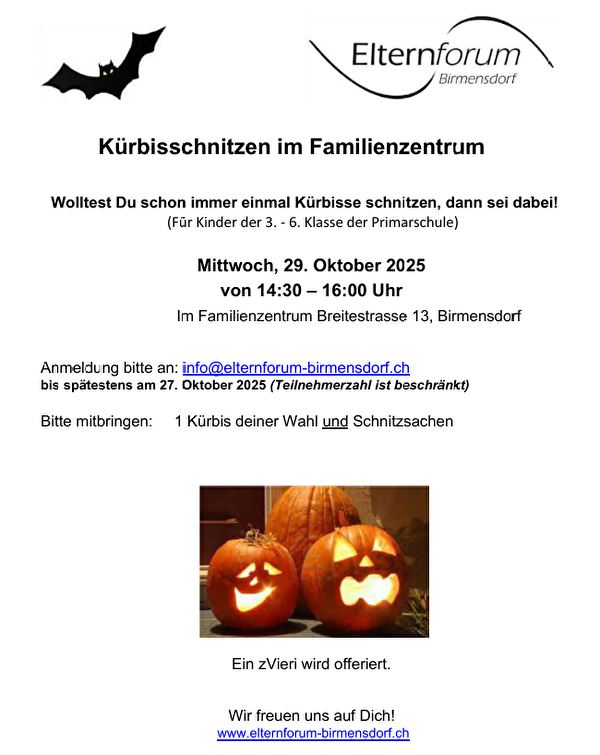 - Anmeldung bitte an: info@elternforum-birmensdorf.ch